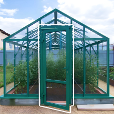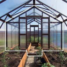 - Ширина 2,1 метра и высота 2,3 метра формируют гармоничные пропорции, благодаря которым конструкция сохраняет чёткий силуэт и удобно размещается даже на компактном участке, а вы получаете комфортное внутреннее пространство для выращивания овощей и зелени.