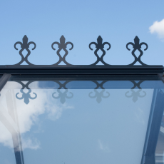 Декоративное навершие и шпиль завершают образ теплицы, добавляя эффект роскоши и превращая её в выразительный акцент участка, который приятно демонстрировать гостям.